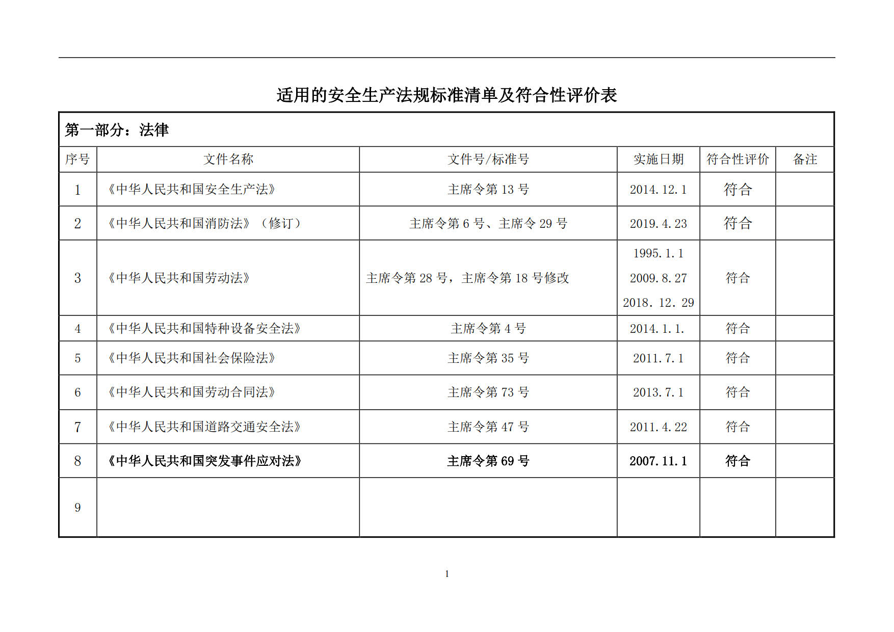 销售生产企业安全生产法规、标准清单及符合性评价表(仅供参考)
