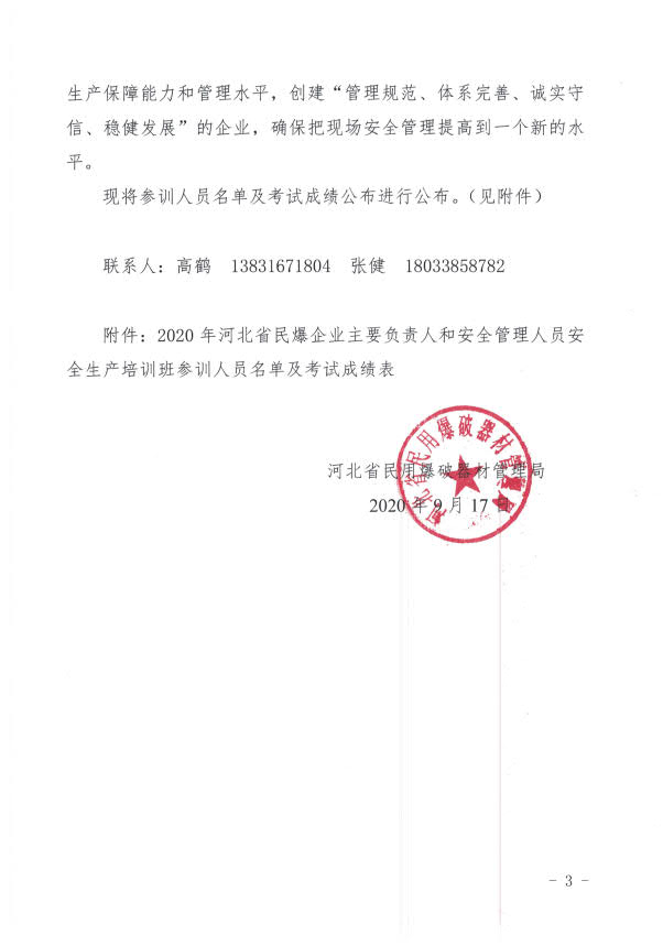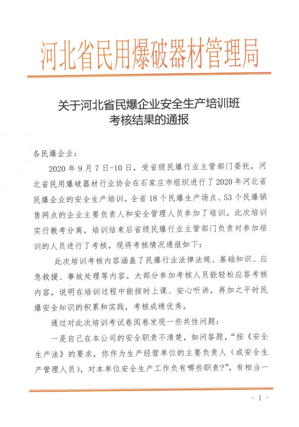 关于河北省民爆企业安全生产培训班考核结果的通报